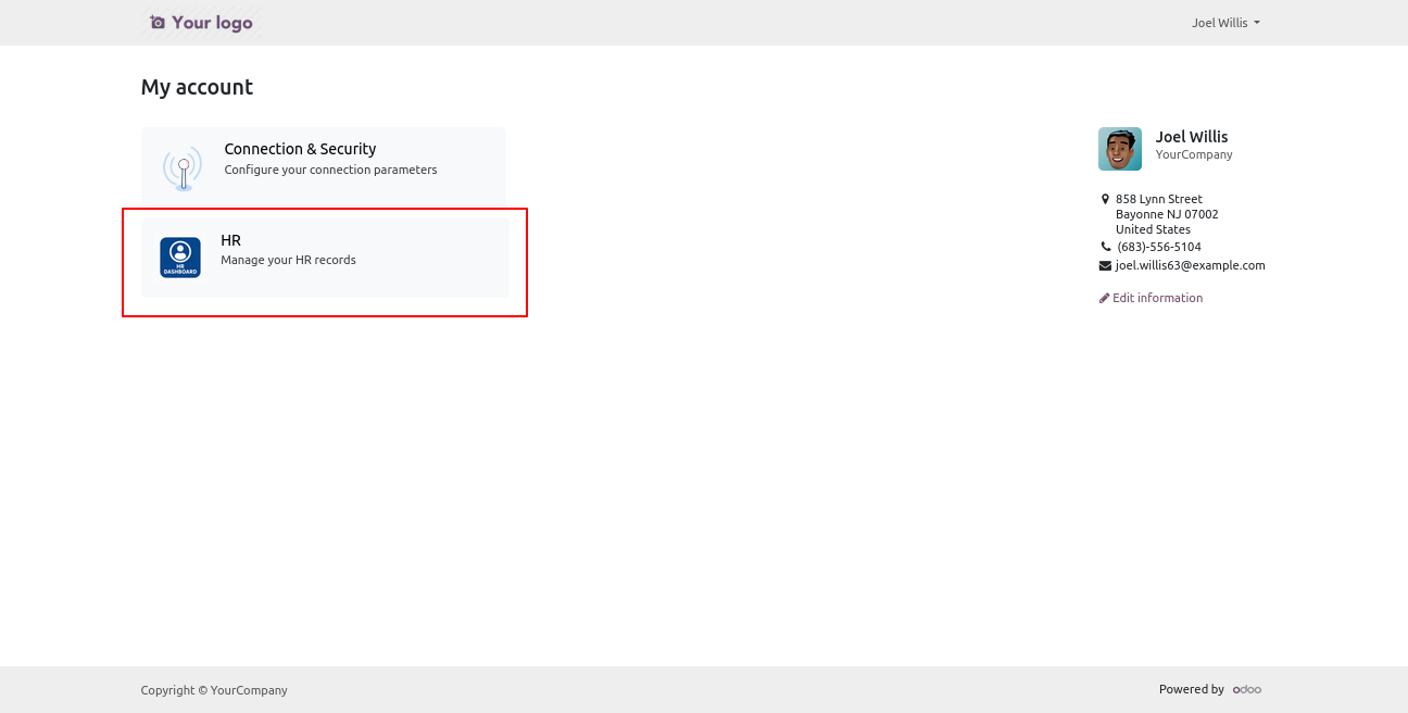 A user-friendly Employee portal in Odoo that allows portal users to access and manage employee-related information directly from the portal without needing any backend or internal user access.Users can view employee details, manage records, and perform actions based on assigned access rights from a simple and secure interface.This module makes employee management easy, transparent, and accessible for external users while maintaining proper access control and security.