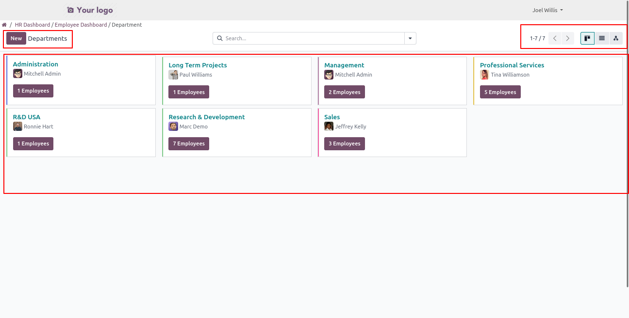 Click on the Department menu to open a backend-like view, where users can view department and create,Write new department records based on their access rights.