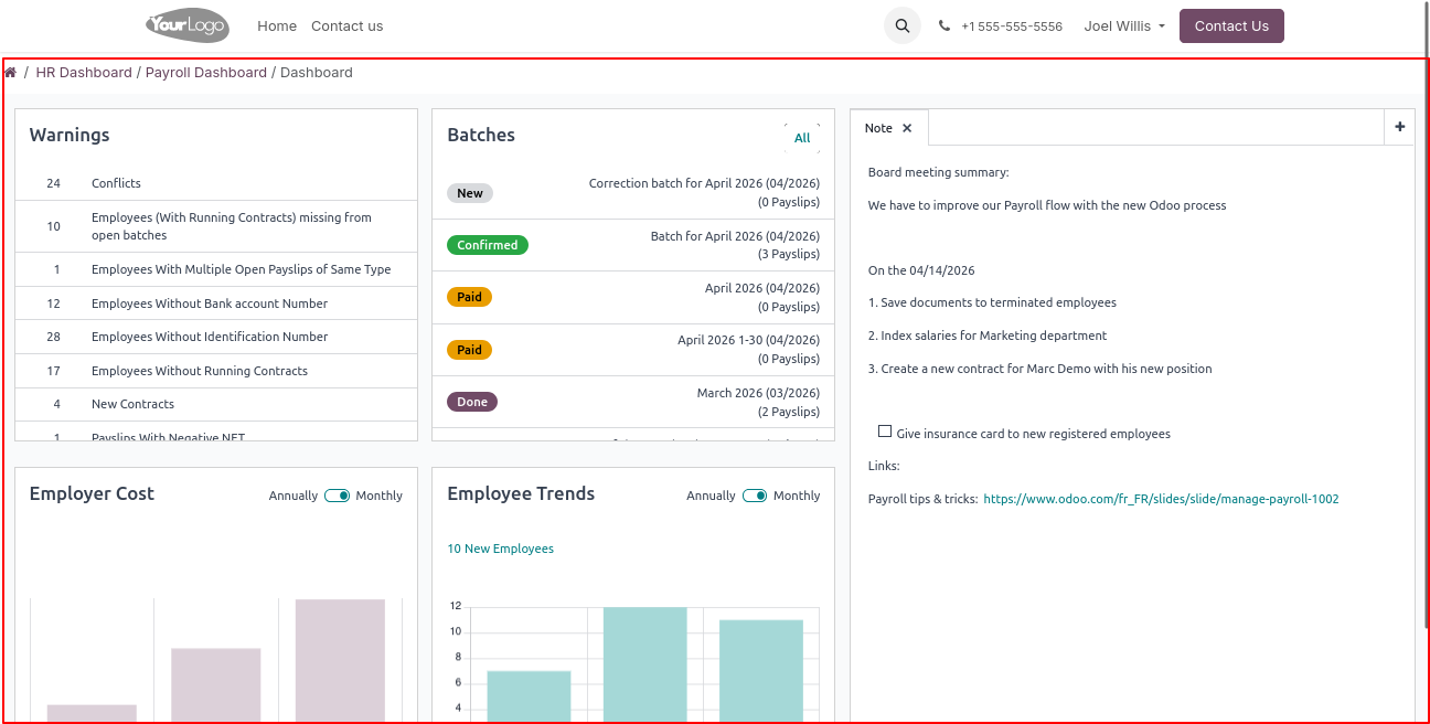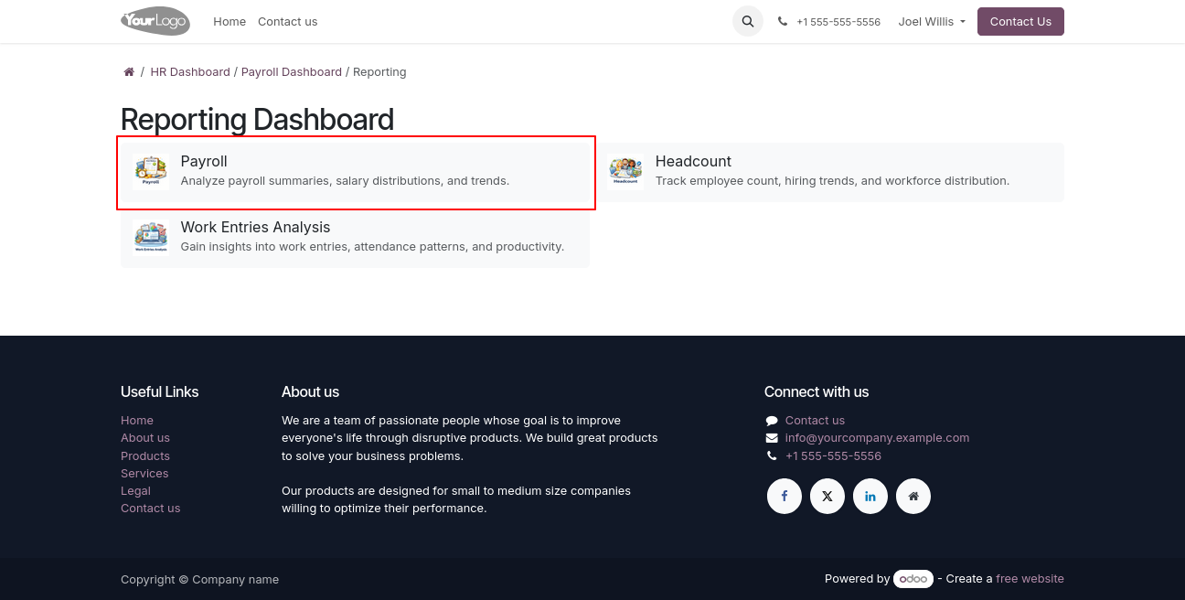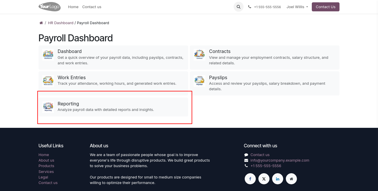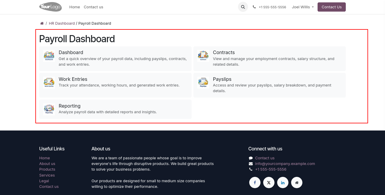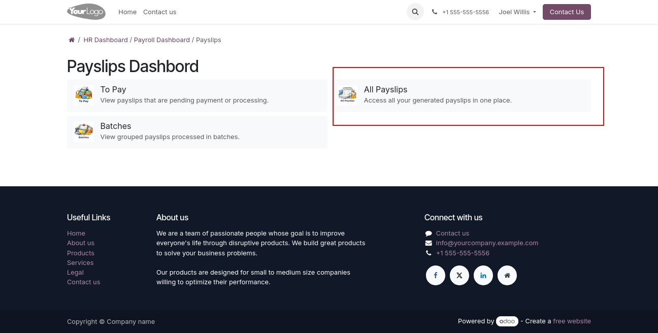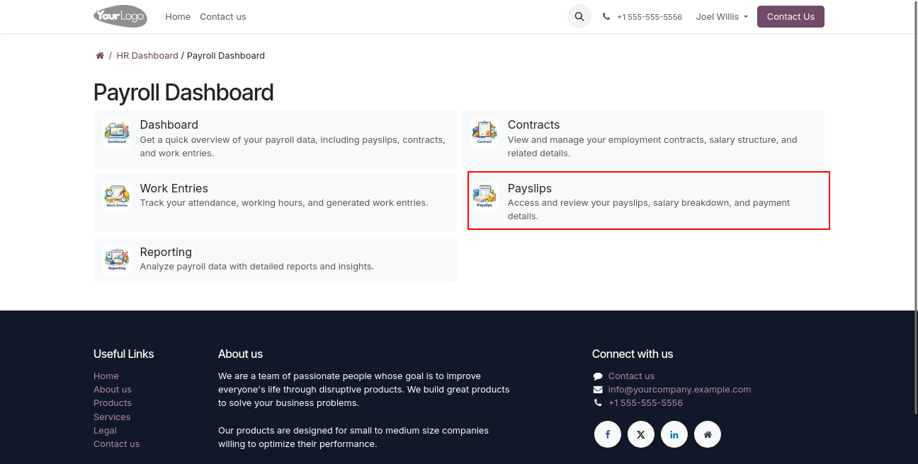 A powerful and user-friendly Payroll Portal module in Odoo that enables portal users to access and manage payroll operations directly from the portal without requiring backend or internal user access.Users can view payslips, track payroll details, download reports, and stay updated with their salary information through a secure and intuitive interface.This module delivers a backend-like payroll experience within the portal while maintaining strict access control, security, and data privacy.