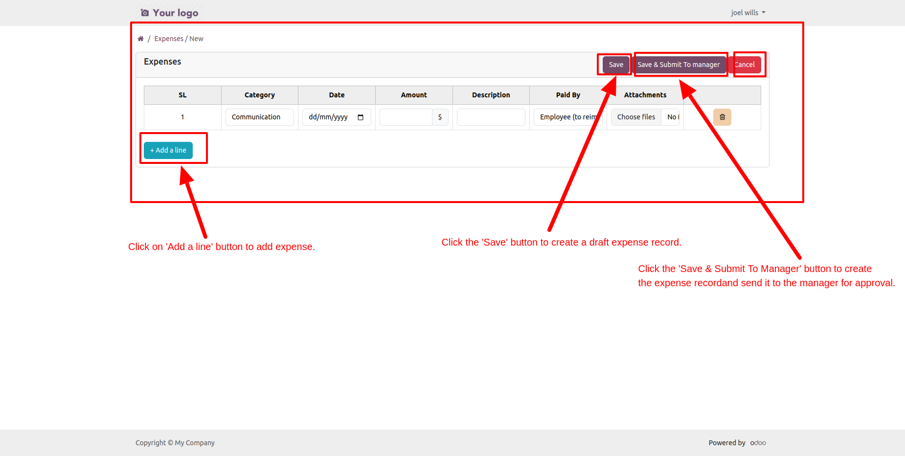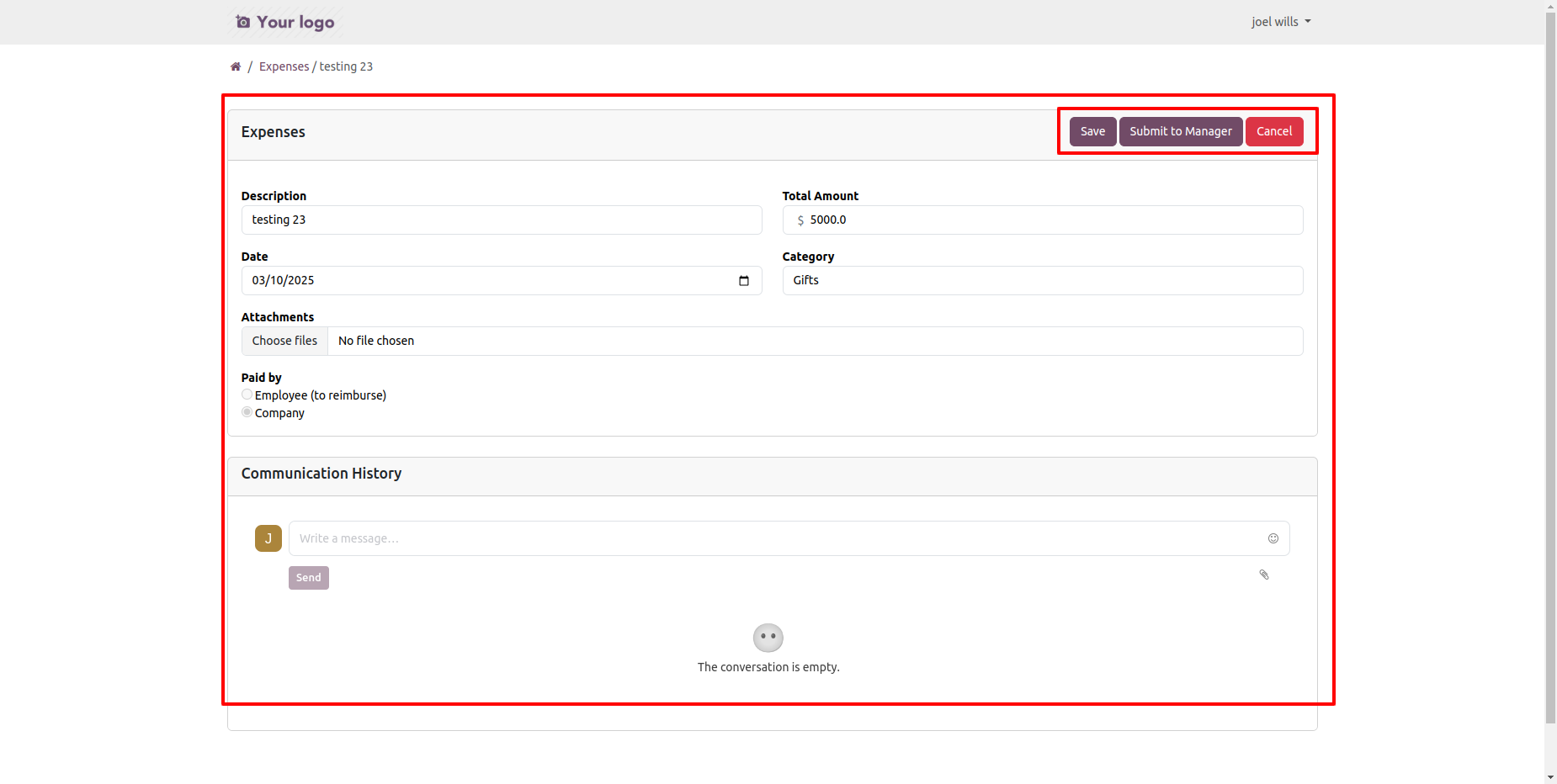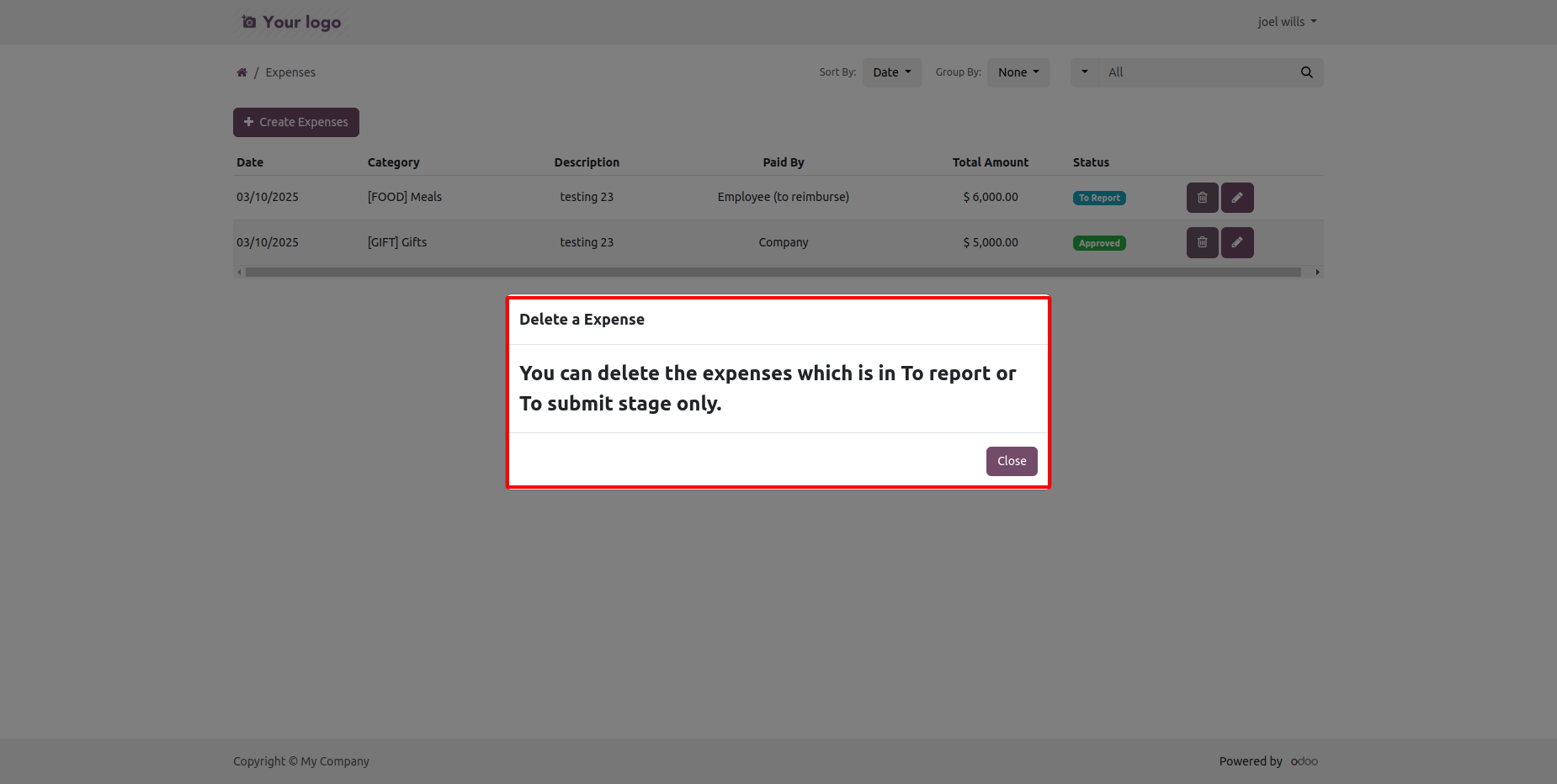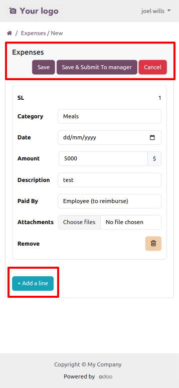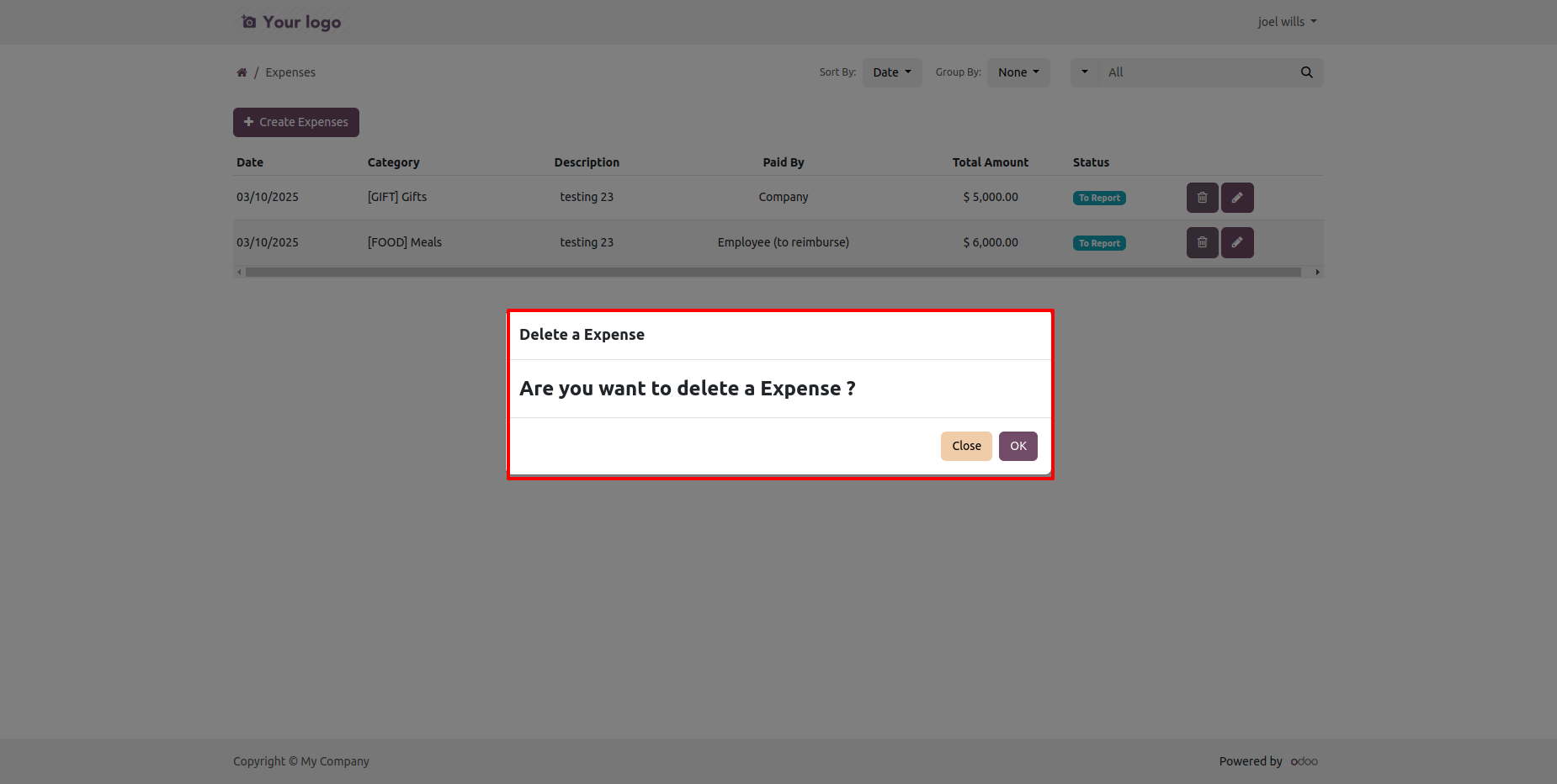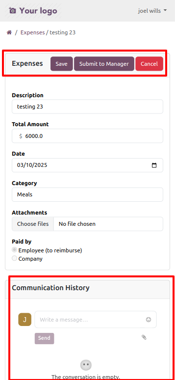 Complete Expense Management from Portal: Portal users have full access to manage their own expenses directly from the Odoo Portal interface — including creating, editing, deleting, and submitting Expenses for manager approval, all without needing backend access.