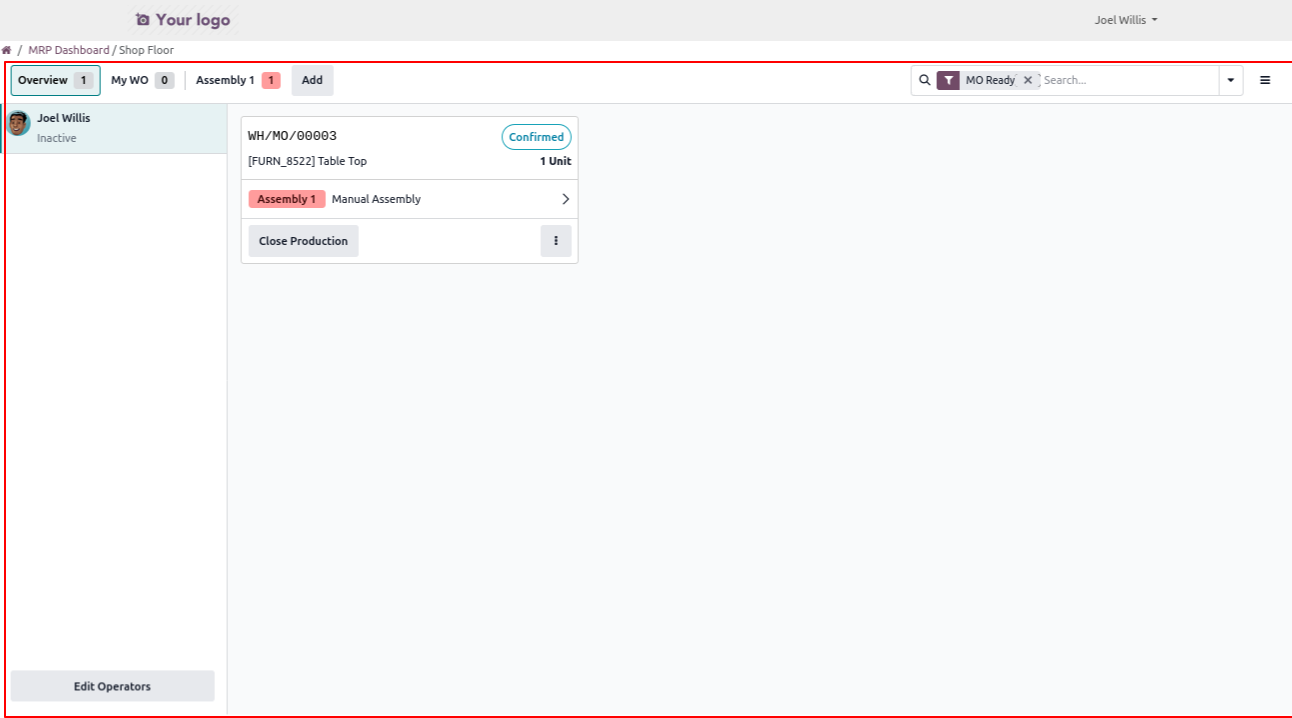 Click on the Shop Floor menu to open a view similar to the backend interface.